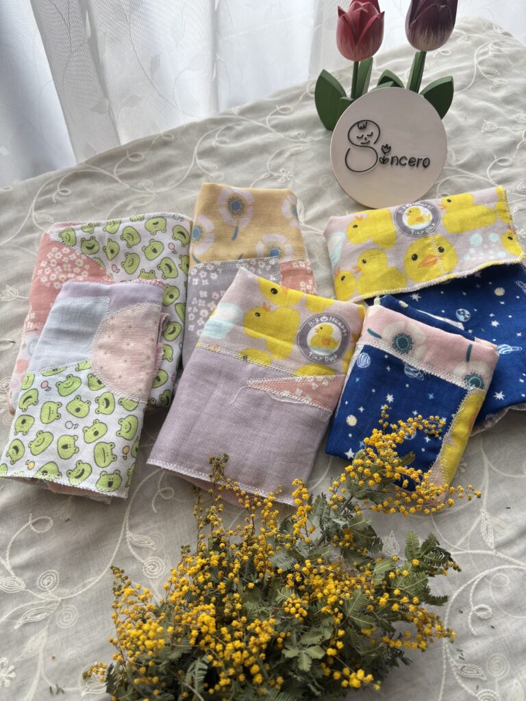 リバーシブルスタイやハンカチ、おくるみなどのベビー用品、