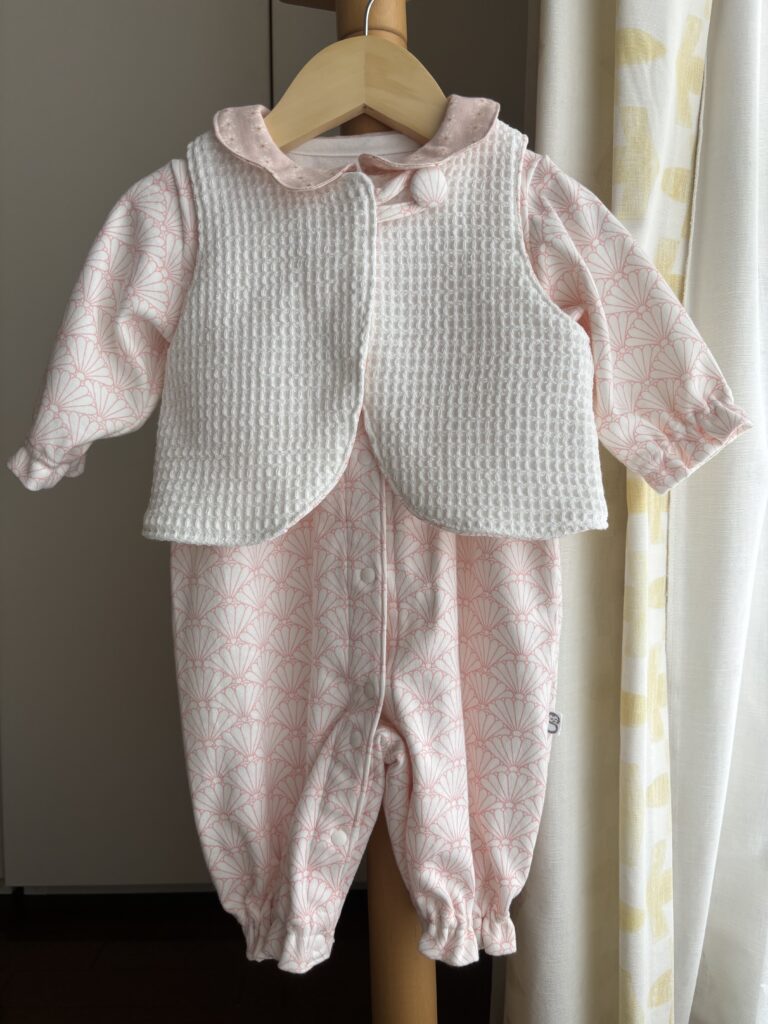 8月生まれの姫ベビーちゃん、やっと涼しくなってきたので、ベストと合わせて活躍の機会が増えそうです。